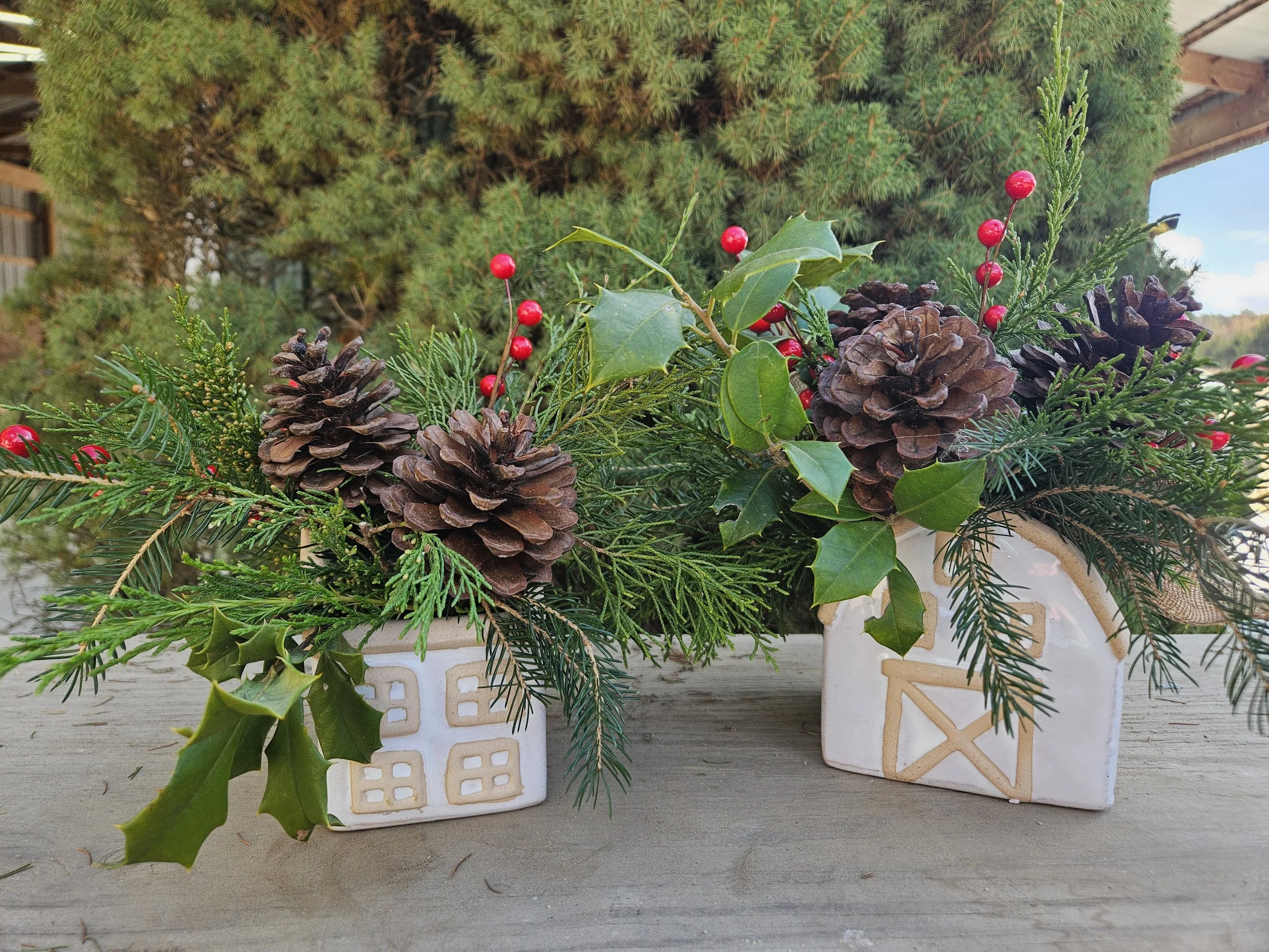 Honor the memory of your loved ones with our beautifully crafted Evergreen Grave Swag. This stunning arrangement features lush evergreens, elegantly intertwined with natural pinecones, adding a touch of rustic charm.